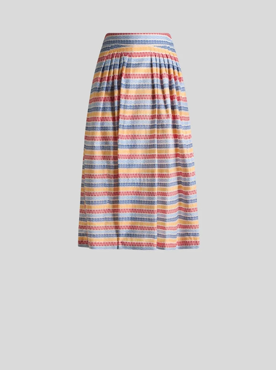 Full circle midi skirt in cotton-blend fabric. This garment features a distinctive floral jacquard motif that forms a striped pattern. • Regular fit • High waist • Rear zip closure • Made in Italy • The model is 5' 9½" (177 cm) tall and wears a size 40 PRODUCT DETAILS • 76% cotton, 24% polyamide