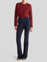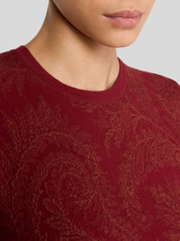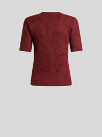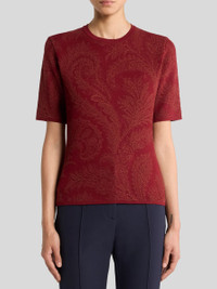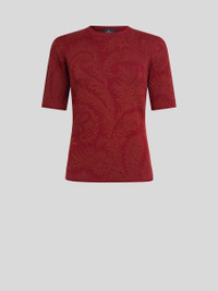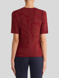 Short-sleeved sweater in cotton-blend jacquard fabric. This model features a decorative, tone-on-tone Paisley foliage motif. • Regular fit • Crew-neck • Short sleeves • Made in Italy • The model is 5' 9½" (177 cm) tall and wears a size 40 PRODUCT DETAILS • 47% viscose, 33% cotton, 20% polyester