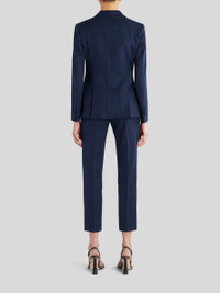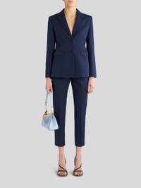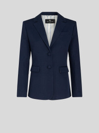 Two-button stretch cotton jacket decorated by a striped lining. PRODUCT DETAILS • 98% cotton, 1% polyamide, 1% elastane • Lining: 52% viscose, 48% acetate • Regular fit • Single-breasted fastening • Piped breast pocket • Front pockets with flap • Fabric buttons • Rear slit • Made in Italy • The model is 178 cm/70 inches tall and wears size 40