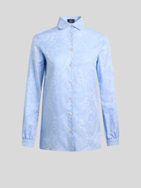 Pure cotton shirt embellished with tonal jacquard motif all over. • Boyfriend slim fit • Button closure • One-button working cuffs • Yoke with inverted pleat on the back • Made in Italy • The model is 5' 9½" (177 cm) tall and wears a size 40 PRODUCT DETAILS • 100% cotton