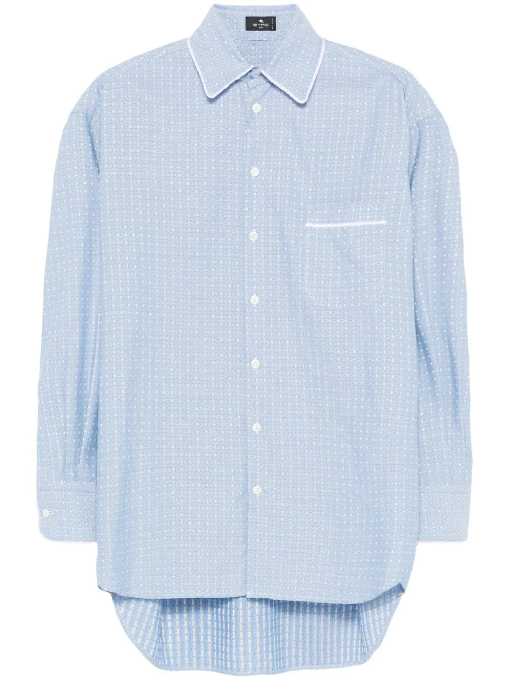 jacquard shirt Highlights - Cornflower blue - Cotton - Full floral jacquard - Front button fastening - Piped-trim detailing - Classic collar - Long sleeves with buttoned cuffs - Chest patch pocket - Pleat detailing to the back - Hem gusset - High-low hem Made in Italy Composition Cotton 100%, Nylon 66%, Polyester 34% SIZE & FIT Model measurements Height 5 ft 10 in(1.77 m) Bust/Chest 33.07 in(84 cm) Hips 37 in(94 cm) Waist 24.8 in(63 cm) FittingInformation Designed for an oversized fit, offering additional room throughout Made from a midweight non-stretch fabric
