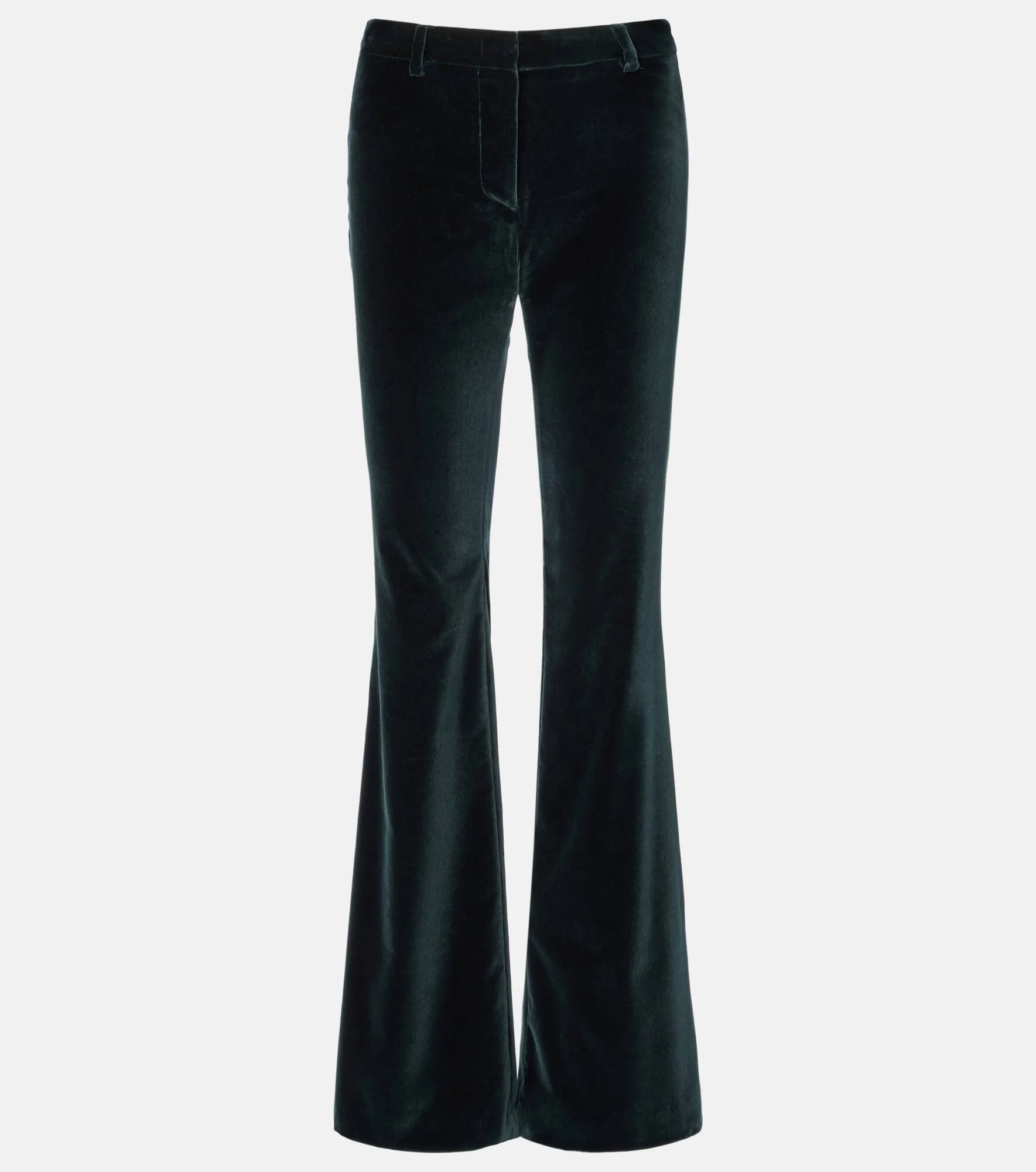 These pants from Etro are an elevated option for your tailoring edit. They're made from cotton velvet that's soft to the touch and feature a timeless flared-leg silhouette. Product Details - Material: 98% cotton, 2% elastane - Care instructions: dry clean - Made in Italy - Designer color name: Verde Scurissimo - Item color: green - Closure: zip, hook, and button fastening - Item number: P01050837 Size & Fit - True to size - Sizing adapted to taller women - Non-stretchy fabric - Slim-leg with a flared hem - High-waisted - The model seen in the picture is 178cm-5'10" and wearing a size IT 40