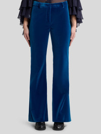 Flared trousers in plain-coloured stretch cotton velvet. • Slim fit • Regular-rise waist • Hook and zip closure • Rear welt pockets • Made in Italy • The model is 5' 9½" (177 cm) tall and wears a size 40 PRODUCT DETAILS • 98% cotton, 2% elastane