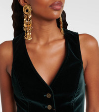 This vest from Etro is made from luxurious cotton velvet in a rich shade – promising a striking effect. The style secures with buttons on the front and is finished with a Paisley lining. Product Details - Material: 98% cotton, 2% elastane - Care instructions: dry clean - Made in Italy - Designer color name: Verdone Scurissimo - Item color: green - Lining: 97% viscose, 3% elastane - Item number: P01050832 Size & Fit - True to size - Cinched waist - Non-stretchy fabric - Slightly cropped - The model seen in the picture is 178cm-5'10" and wearing a size IT 40