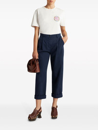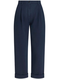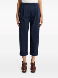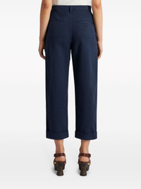 cropped herringbone-pattern cotton chinos Highlights - Navy blue - Cotton - Herringbone - Pleat detailing - Signature pegaso motif - Belt loops - High-waisted - Cropped straight leg - Front button fastening - Two side slash pockets - Two rear welt pockets - Rolled cuffs Made in Italy Composition Cotton 100% Washing instructions Read Manufacturer Guidelines