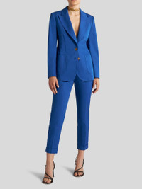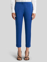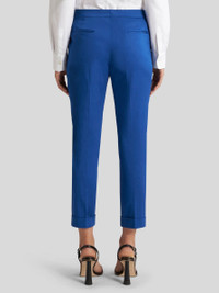 Cropped trousers with regular waist, pressed creases and cuffs at the bottom. This model is made from stretch cotton gabardine. • Cropped cigarette fit • Regular waist • Hook and zip closure • Side pockets • Rear welt pockets • Made in Italy • The model is 5' 9½" (177 cm) tall and wears a size 40 PRODUCT DETAILS • 97% cotton, 3% elastane
