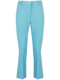 cropped tailored trousers blue stretch-design mid-rise belt loops concealed front fastening cropped leg Made in Italy Composition Viscose 66%, Acetate 31%, Elastane 3% SIZE & FIT Model measurements Height 5 ft 10 in(1.78 m) Bust/Chest 31.49 in(80 cm) Hips 35.03 in(89 cm) Waist 23.62 in(60 cm) Measurement INSIDE LEG 26.77 in(68 cm) HIPS 36.61 in(93 cm) WAIST 27.95 in(71 cm) FittingInformation This piece fits true to size. We recommend you get your regular size Cut for a slim fit Made with a mid-weight fabric Washing instructions Dry Clean Only