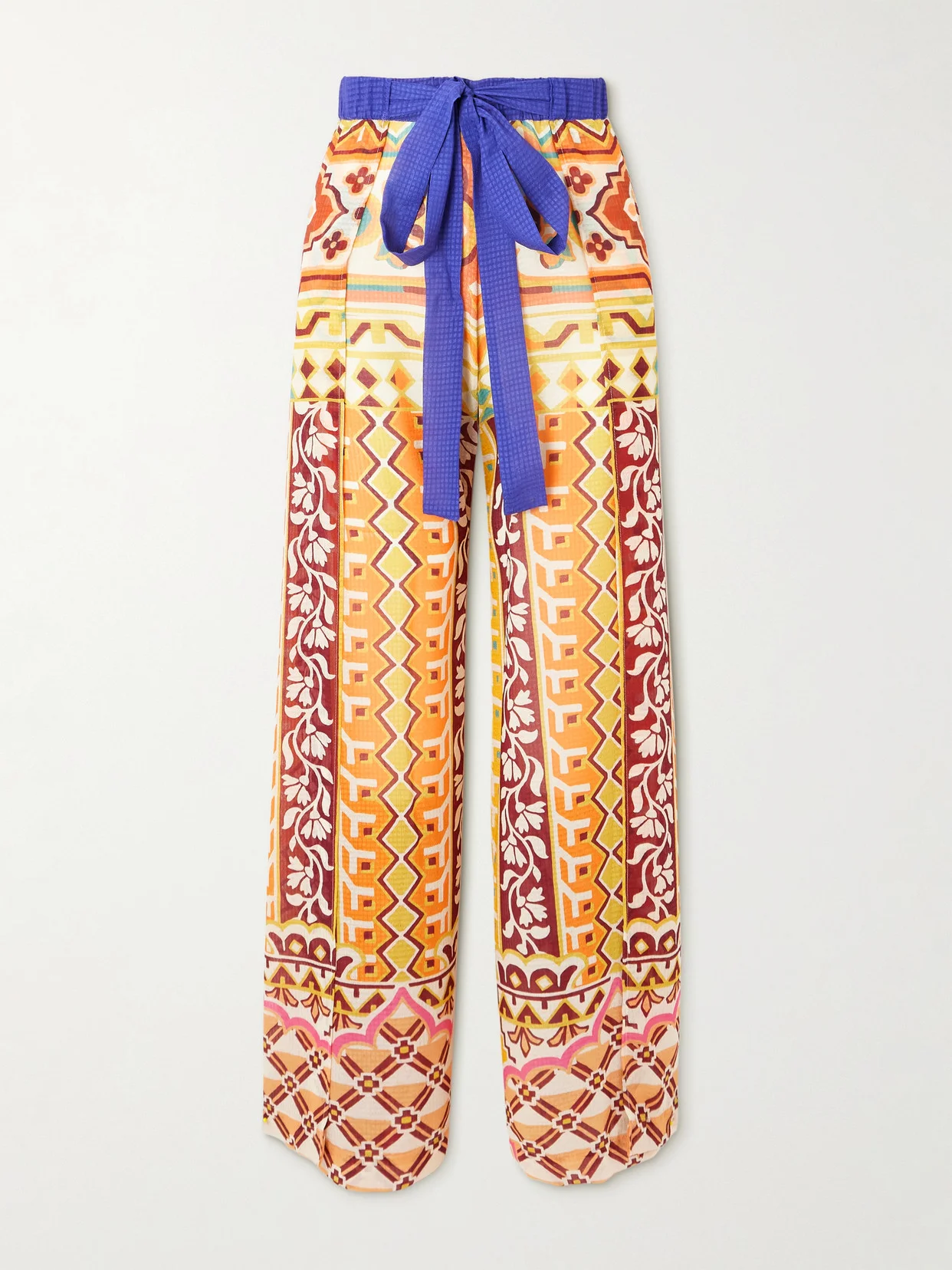 Belted Printed Satin-jacquard Wide-leg Pants