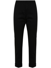 cropped wool trousers Highlights - Black - Wool blend - Twill weave - Cropped leg - Concealed front button, hook and zip fastening - Pressed crease - Two diagonal pockets to the sides - Two rear jetted pockets - Turn-up hem Made in Italy Composition Wool 98%, Elastane 2% SIZE & FIT Model measurements Height 5 ft 11 in(1.8 m) Bust/Chest 33.07 in(84 cm) Hips 37.4 in(95 cm) Waist 25.19 in(64 cm) FittingInformation Designed for a slim fit, these trousers offer a close fit at the waist, allowing a comfortable close fit and some movement over the leg Cropped in length Made from a midweight stretch fabric, this piece offers elasticity and flexibility when worn This piece fits large – take one size down