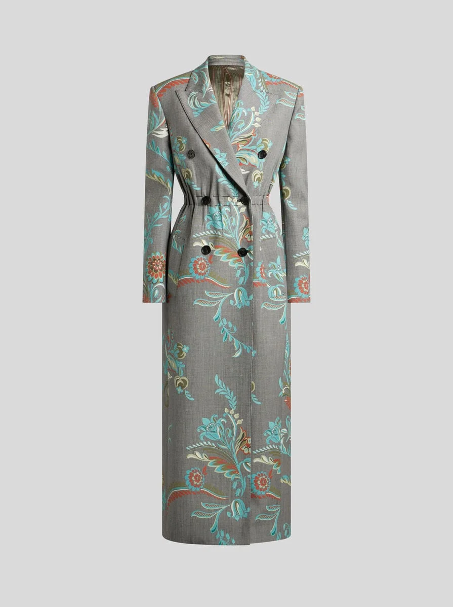 DOUBLE-BREASTED WOOL-BLEND COAT WITH DAFFODIL PRINT