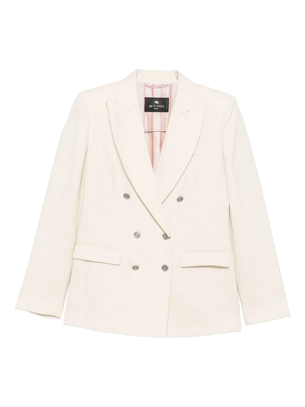 double-breasted blazer Highlights - White - Double-breasted - Peak lapels - Front flap pockets - Button fastening Made in Italy Composition Wool 100% SIZE & FIT Model measurements Height 5 ft 10 in(1.77 m) Bust/Chest 32.28 in(82 cm) Hips 35.03 in(89 cm) Waist 25.19 in(64 cm) Washing instructions Read Manufacturer Guidelines