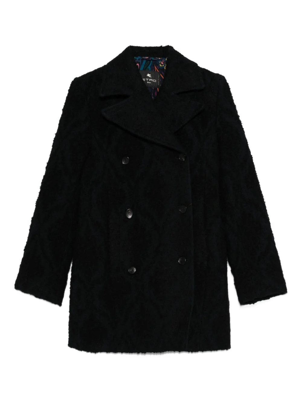 double-breasted coat Highlights - Black - Textured weave - Double-breasted fastening - Notched lapels - Long sleeves - Button closure Made in Italy Composition Outer: Wool 60%, Cotton 37%, Polyamide 3% Lining: Viscose 97%, Spandex/Elastane 3% SIZE & FIT Model measurements Height 5 ft 9 in(1.75 m) Bust/Chest 34.64 in(88 cm) Hips 36.61 in(93 cm) Waist 26.37 in(67 cm) Washing instructions Dry Clean Only