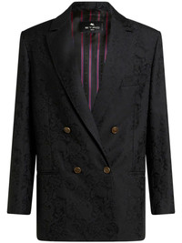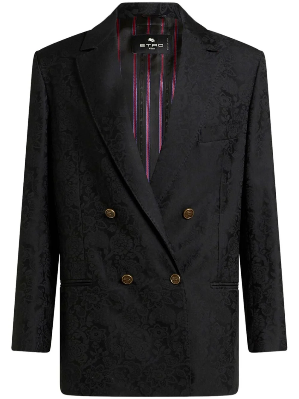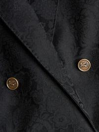 double-breasted jacket Highlights - Black - Patterned jacquard - Double-breasted button fastening - Wide peak lapels - Two front welt pockets - Long sleeves - Buttoned cuffs - Straight hem Made in Italy Composition Outer: Cotton 53%, Wool 47% Lining: Viscose 52%, Acetate 48%