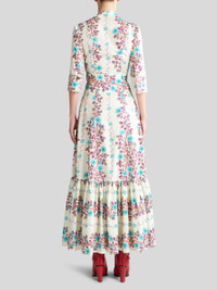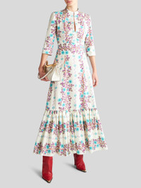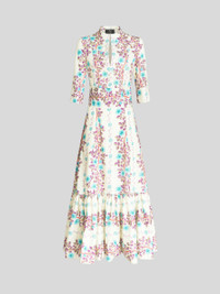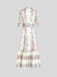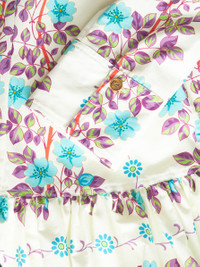 Dress with waist seam and wide skirt with flounce at the bottom. This model is made from cotton poplin with a decorative floral print. PRODUCT DETAILS • 100% cotton