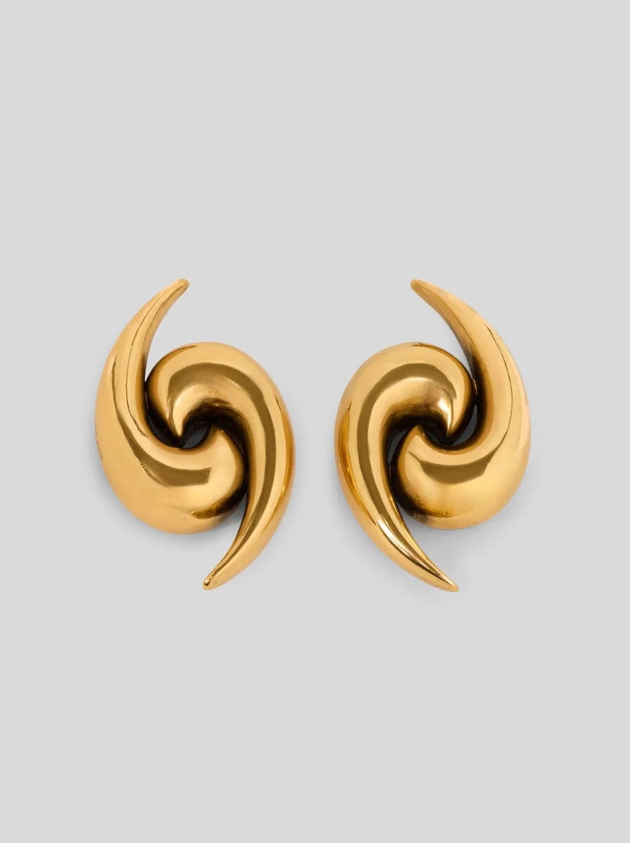 Vintage-finish brass drop earrings with two maxi elements in the shape of the iconic Paisley. Presented at the Spring/Summer 26 Runway Show, this accessory is complete with engraved ETRO logo lettering. • Length: 2.6 inches (6.5 cm) • Width: 1.4 inches (3.5 cm) • Pin closure • Made in Italy PRODUCT DETAILS • 100% brass