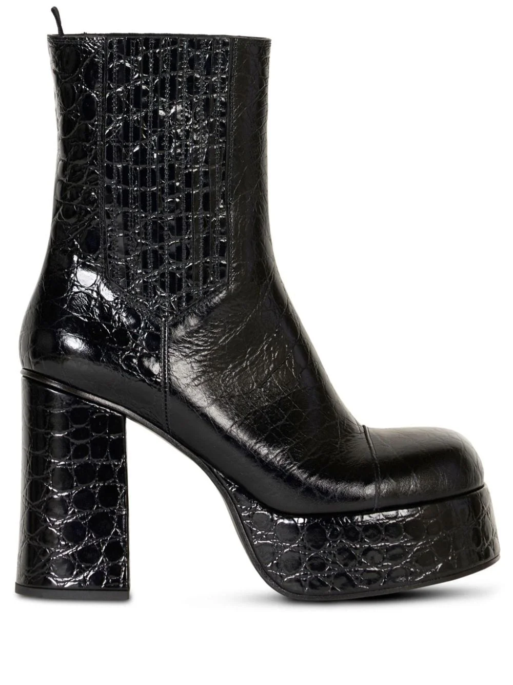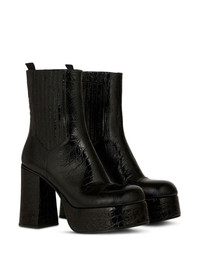 embossed-leather platform ankle boots Highlights - Black - Leather - Embossed crocodile effect - Elasticated side panels - Pull-tab at the heel - Platform sole - High block heel - Slip-on style Imported Composition Sole: Calf Leather 100% Lining: Calf Leather 100% Outer: Calf Leather 100% SIZE & FIT Measurement HEEL 4.13 in(10.5 cm)