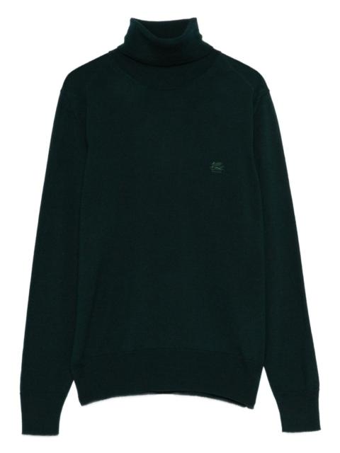 embroidered-logo sweater Highlights - Blue - Roll neck - Long sleeves - Embroidered logo - Straight hem Made in Italy Composition Wool 100% SIZE & FIT Model measurements Height 5 ft 9 in(1.75 m) Bust/Chest 32.67 in(83 cm) Hips 36.22 in(92 cm) Waist 24.8 in(63 cm) Washing instructions Hand Wash