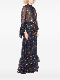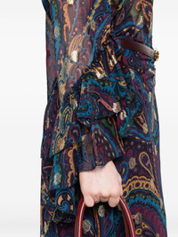 paisley-print ruffled top Highlights - Blue - Paisley print - Metallic embellishments - Ruffled sleeves - Self-tie pussy bow Made in Italy Composition Silk 98%, Metallised Fibres 2% SIZE & FIT Model measurements Height 5 ft 9 in(1.75 m) Bust/Chest 34.64 in(88 cm) Hips 36.61 in(93 cm) Waist 26.37 in(67 cm) Washing instructions Dry Clean Only