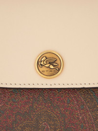 ETRO Essential crossbody bag in the iconic Paisley jacquard canvas featuring a fastening with contrasting leather flap and button with ETRO logo and Pegaso. The bag is embellished by a suede lining and is perfect to be worn on the shoulder, as a crossbody bag or handbag. PRODUCT DETAILS • 19 x 14 x 4.5 cm / 7.48 x 5.51 x 1.77 inches • Exterior: Paisley fabric. Front: 76% cotton. 24% polyester; Back: 100% cotton • Coating_PVC • Details: 100% calfskin • Interior: 100% lambskin • Two inside compartments • Rear pocket • Magnetic button fastening • Detachable and adjustable shoulder strap length (drop) 55 cm / 21.65 inches • Gold-finish metal accessories • Made in Italy
