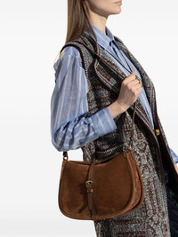 suede saddle crossbody bag Highlights - Brown - Front buckle detail - Adjustable shoulder strap - Zip fastening - Spacious interior Made in Italy Composition Outer: Calf Leather 100% SIZE & FIT Measurement DEPTH 3.93 in(10 cm) HEIGHT 7.48 in(19 cm) WIDTH 11.81 in(30 cm)