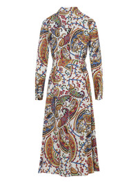 paisley-pattern midi shirt dress Highlights - White and multicoloured - Paisley print - Point collar - Front button fastening - Long sleeves - Tie waist - Buttoned cuffs Made in Italy Composition Cotton 100% Washing instructions Read Manufacturer Guidelines