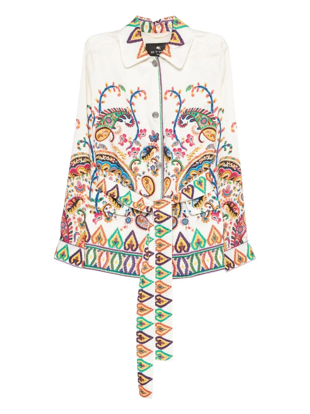 paisley-print belted jacket Highlights - White - Paisley print - Button fastening - Classic collar - Detachable belt - Chest pockets Made in Italy Composition Outer: Polyester 100% Lining: Polyester 100% SIZE & FIT Model measurements Height 5 ft 9 in(1.76 m) Bust/Chest 31.88 in(81 cm) Hips 35.43 in(90 cm) Waist 24.8 in(63 cm) Washing instructions Machine Wash