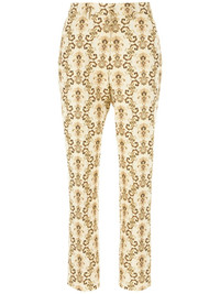 embroidered pants Highlights - Beige - Embroidered motif - Concealed front fastening - Belt loops - Two rear welt pockets - Straight leg Made in Italy Composition Polyester 49%, Cotton 48%, Metallic Fibre 2%, Nylon 1%
