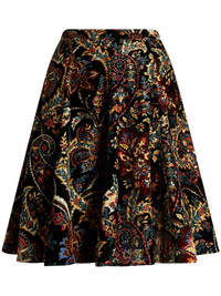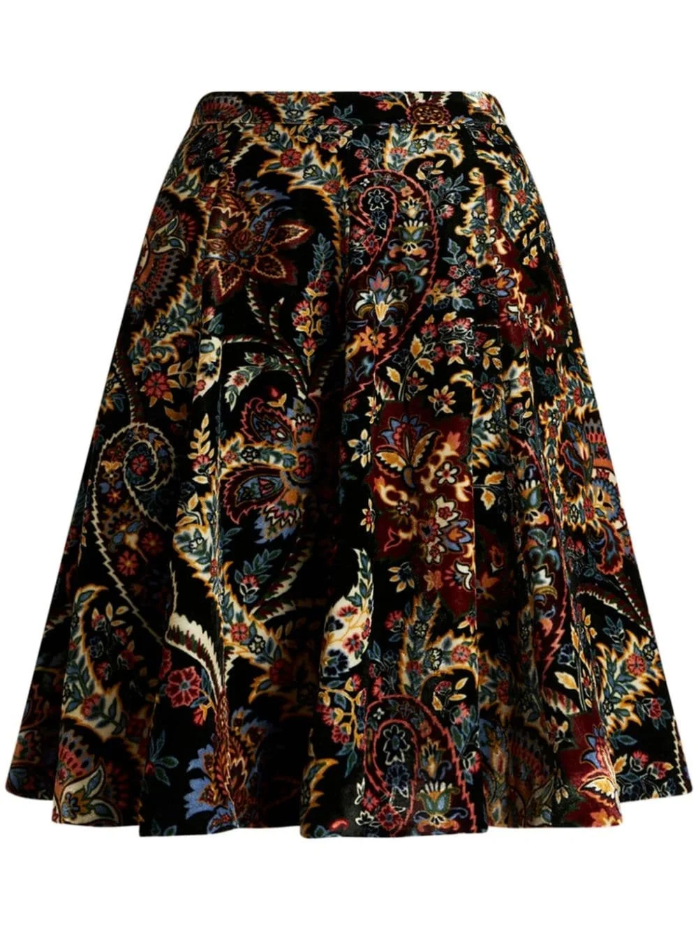 paisley-print velvet shirt Highlights - Black/multicolour - Velvet - Paisley print - Mid-rise - Flared design - Rear zip fastening - Knee-length Made in Italy Composition Lining: Polyester 100% Outer: Viscose 82%, Silk 18% Washing instructions Read Manufacturer Guidelines
