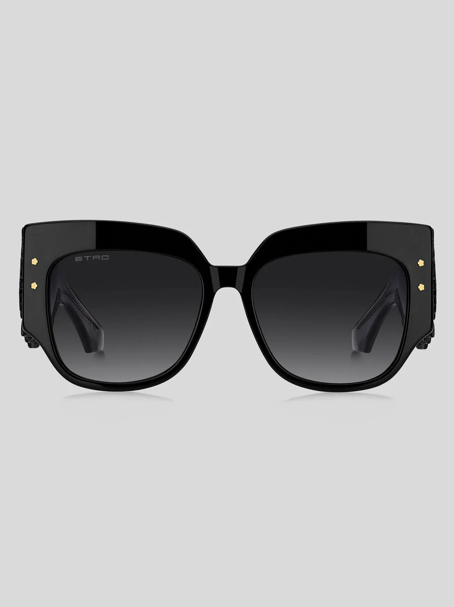 Channelling ETRO's innovative spirit rooted in refined craftsmanship, the "Etroblossom" optical glasses are at once elegant and uncompromising. Premium acetate rims frame a comfortable silhouette accented by flower-shaped screws on both sides. The tri-layer acetate temples are embellished with high-relief floral motifs in a nod to runway fabrics, while a visible wire-core and inlet logo enhance the transparent design. The geometrically sculpted end tips finish the design with a signature ETRO detail. PRODUCT DETAILS • Frame: acetate • Lenses with UV protection • Fitting: international • Lens: 48,1 mm, bridge: 17mm, temples: 145 mm • Made in Italy