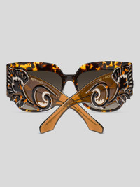 Channelling ETRO's innovative spirit rooted in refined craftsmanship, the "Etroblossom" optical glasses are at once elegant and uncompromising. Premium acetate rims frame a comfortable silhouette accented by flower-shaped screws on both sides. The tri-layer acetate temples are embellished with high-relief floral motifs in a nod to runway fabrics, while a visible wire-core and inlet logo enhance the transparent design. The geometrically sculpted end tips finish the design with a signature ETRO detail. PRODUCT DETAILS • Frame: acetate • Lenses with UV protection • Fitting: international • Lens: 48,1 mm, bridge: 17mm, temples: 145 mm • Made in Italy