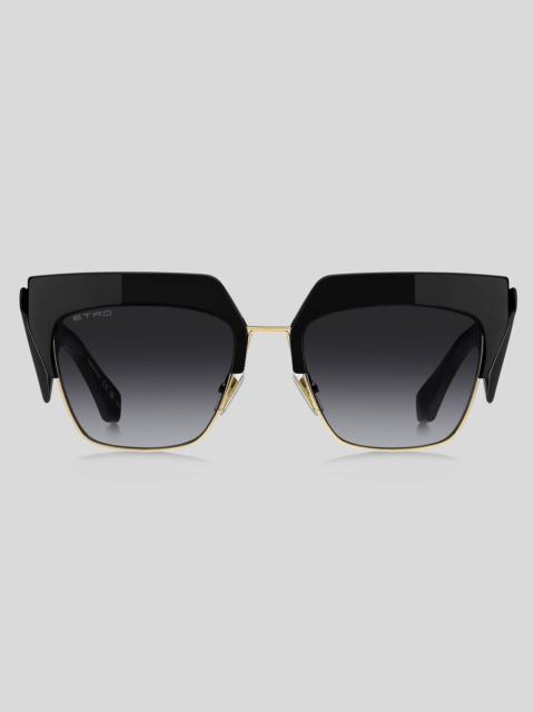 Equal parts refined and rebellious, the Etroclub sunglasses put a trendy twist on the classic shape. The sleek metal rims are given a fresh, contemporary look thanks to the unexpected combination of colours and materials – notice the bold acetate brow bar with bevelled edges and vintage-inspired triangular temples. Lightweight and comfortable, they come complete with Etro's trademark nose pads and end tips, as well as the brand's logo lettering placed diagonally on each side. PRODUCT DETAILS • Frame: acetate • Lenses with UVA & UVB protection • Fitting: international • Lenses: 44,6mm, bridge: 18mm, temple: 145mm • Made In Italy