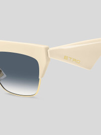 Equal parts refined and rebellious, the Etroclub sunglasses put a trendy twist on the classic shape. The sleek metal rims are given a fresh, contemporary look thanks to the unexpected combination of colours and materials – notice the bold acetate brow bar with bevelled edges and vintage-inspired triangular temples. Lightweight and comfortable, they come complete with Etro's trademark nose pads and end tips, as well as the brand's logo lettering placed diagonally on each side. PRODUCT DETAILS • Frame: metal • Lenses with UVA and UVB protection • Fitting: asian fitting • Lens: 57,0mm, bridge: 16mm, temple: 145mm • Made In Italy