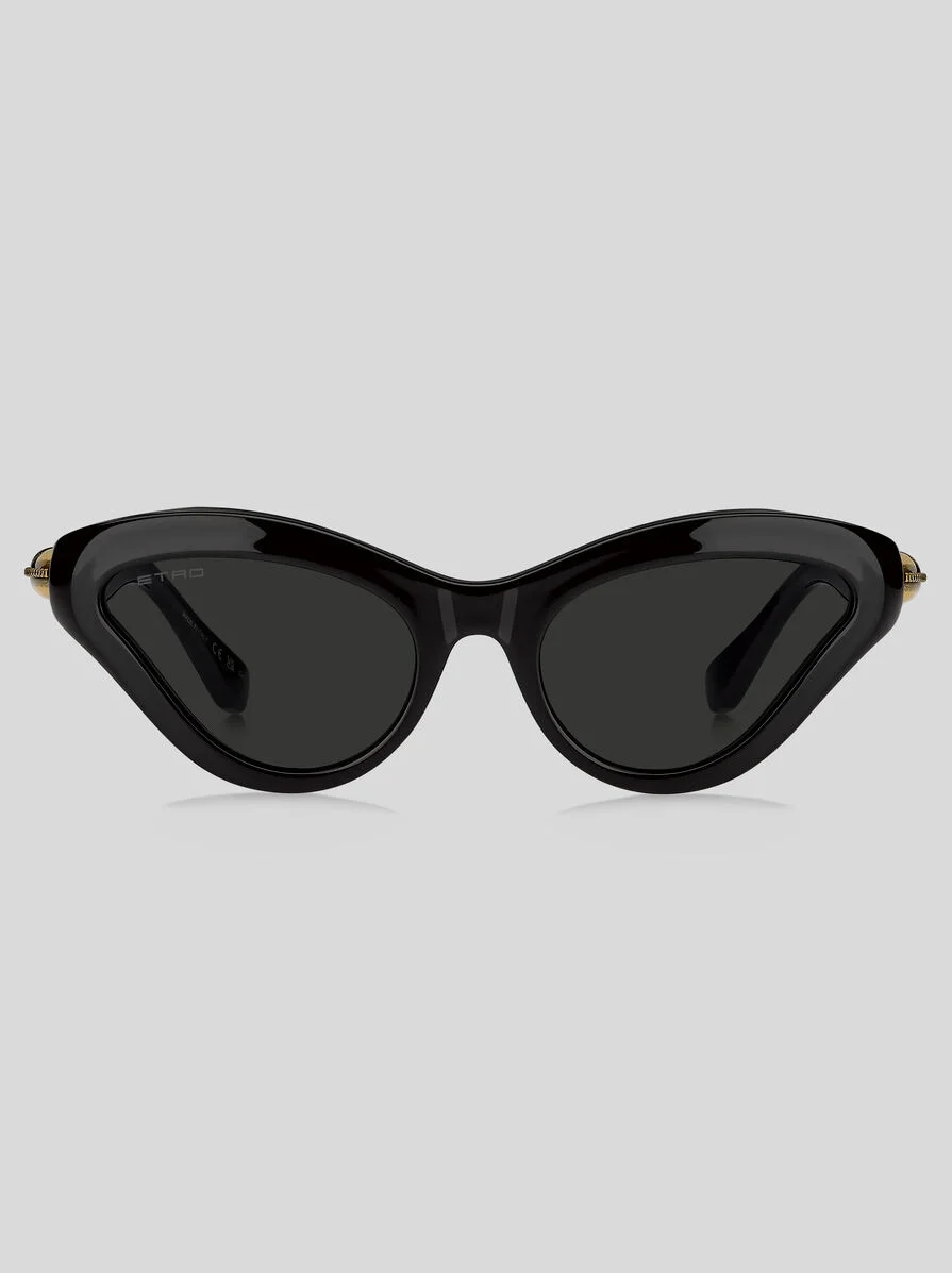 Evolving a heritage design, the "Etrodrop" eyewear line brings the Italian Maison's iconic motif into focus. These sunglasses are crafted with a softly curved geometric frame and comfortable temples resembling the refined Paisley shape, complete with an ornamental hinge detail inspired by ETRO's jewellery tradition. Laser-etched logo lettering on the tinted lenses and sculpted end tips are recognisable finishing touches. PRODUCT DETAILS • Frame: acetate • Lenses with UV protection • Fitting: international • Lens: 37,8 mm, bridge: 20mm, temples: 140 mm • Made in Italy
