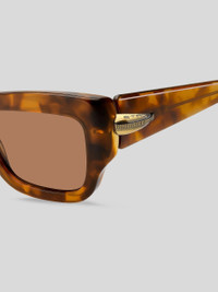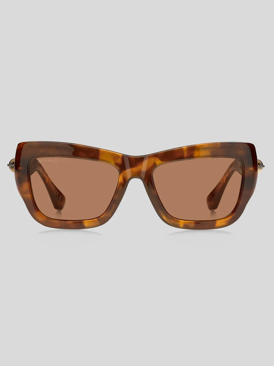 Evolving a heritage design, the "Etrodrop" eyewear line brings the Italian Maison's iconic motif into focus. These sunglasses are crafted with a softly curved geometric frame and comfortable temples resembling the refined Paisley shape, complete with an ornamental hinge detail inspired by ETRO's jewellery tradition. Laser-etched logo lettering on the tinted lenses and sculpted end tips are recognisable finishing touches. PRODUCT DETAILS • Frame: acetate • Lenses with UV protection • Fitting: international • Lens: 39,9 mm, bridge: 19mm, temples: 140 mm • Made in Italy