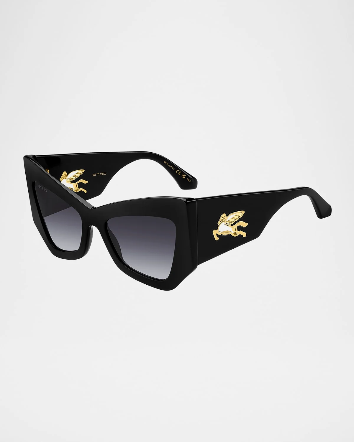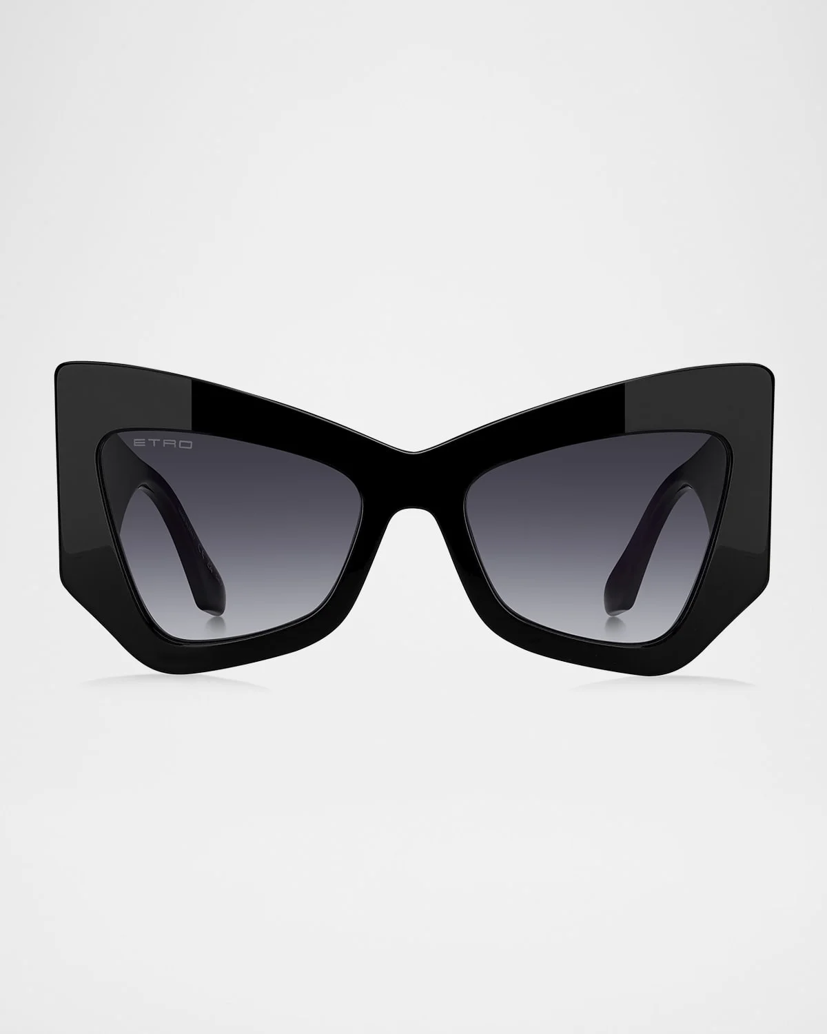 - Etro "Etromania" butterfly sunglasses in paisley-patterned acetate - Eye/bridge/temple (in mm): 55-20-140 - Gradient lenses with lasered logo on the corner - Saddle nose bridge - Pegaso emblem on temples - Wide, tapered arms - 100% UVA/UVB protection - Made in Italy - Proposition 65 warning for California residents