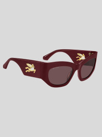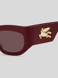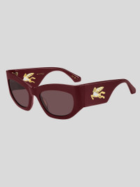 Refined and quintessentially ETRO, these sunglasses make a stunning statement with their bold shape, exquisite construction and the precious Pegaso detail – crafted from a single piece of metal to create an unexpected cutout effect. They're made from premium acetate developed exclusively for the brand, finished using a milling process, and available in classic black, ETRO's burgundy, and Paisley-patterned variations that give fresh energy to heritage codes. PRODUCT DETAILS • Frame: acetate • Lenses with UVA and UVB protection • Fitting: global fitting • Lens: 39,5mm, bridge: 21mm, temple: 135mm • Made In China