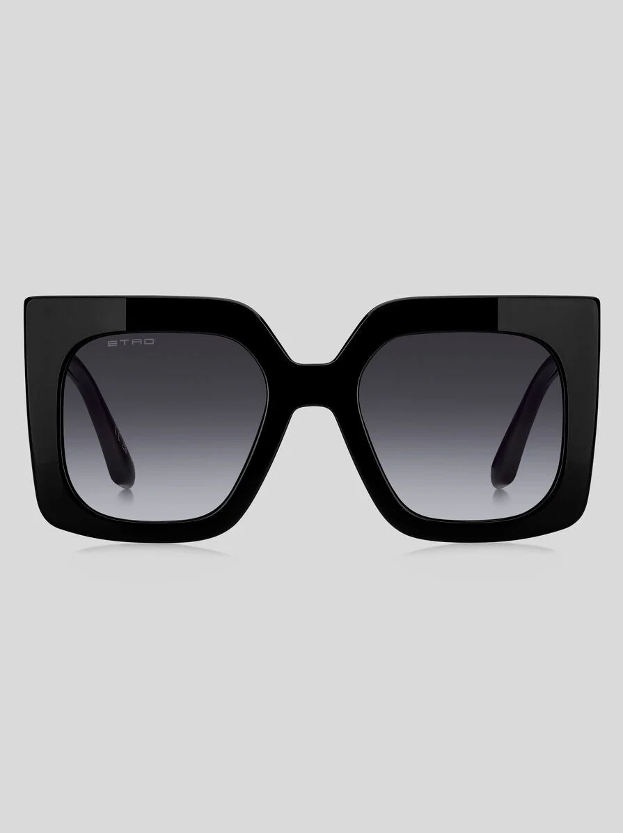 Refined and quintessentially ETRO, these sunglasses make a stunning statement with their bold shape, exquisite construction and the precious Pegaso detail – crafted from a single piece of metal to create an unexpected cutout effect. They're made from premium acetate developed exclusively for the brand, finished using a milling process, and available in classic black, ETRO's burgundy, and Paisley-patterned variations that give fresh energy to heritage codes. PRODUCT DETAILS • Frame: acetate • Lenses with UVA and UVB protection • Fitting: global fitting • Lens: 39,5mm, bridge: 21mm, temple: 135mm • Made In China