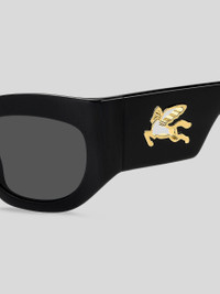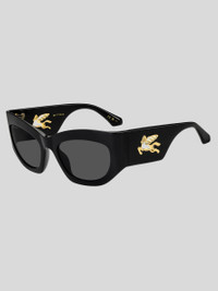 Refined and quintessentially ETRO, these sunglasses make a stunning statement with their bold shape, exquisite construction and the precious Pegaso detail – crafted from a single piece of metal to create an unexpected cutout effect. They're made from premium acetate developed exclusively for the brand, finished using a milling process, and available in classic black, ETRO's burgundy, and Paisley-patterned variations that give fresh energy to heritage codes. PRODUCT DETAILS • Frame: acetate • Lenses with UVA and UVB protection • Fitting: global fitting • Lens: 39,5mm, bridge: 21mm, temple: 135mm • Made In China
