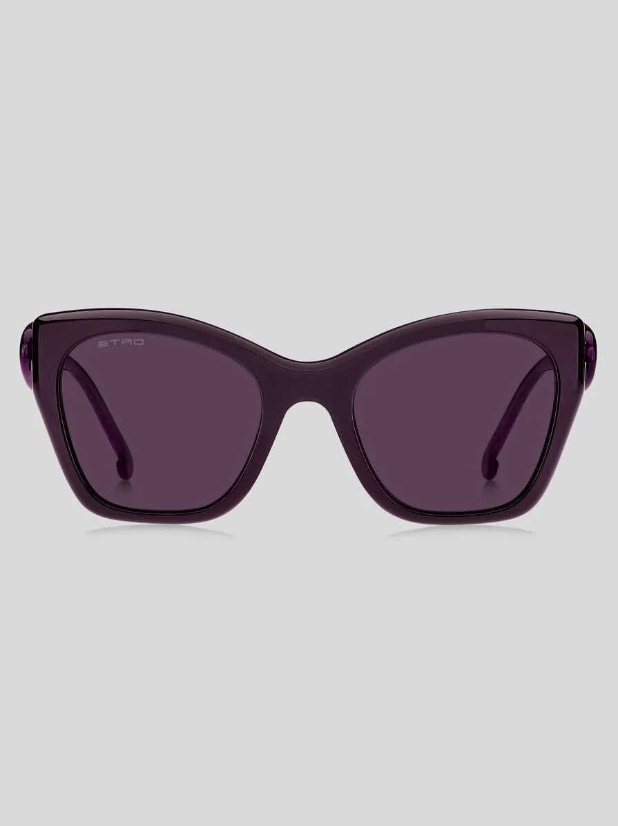 The epitome of the ETRO spirit, the "Etropaisley" eyewear line celebrates the brand's unmistakable motif in all its forms and chromatic variations. These sunglasses are reminiscent of a work of art with their softly curved geometric frame and custom wavy temples resembling the iconic Paisley shape. With an emphasis on delicate proportions and daring colourways, including irresistible two-tone variations, each style is accented with the ETRO logo and the brand's signature tips featuring the rounded geometry of the Paisley motif. PRODUCT DETAILS • Frame: acetate • Lenses with UVA and UVB protection • Fitting: international • Lens: 46,9mm, bridge: 22mm, temple: 145mm • Made In Italy