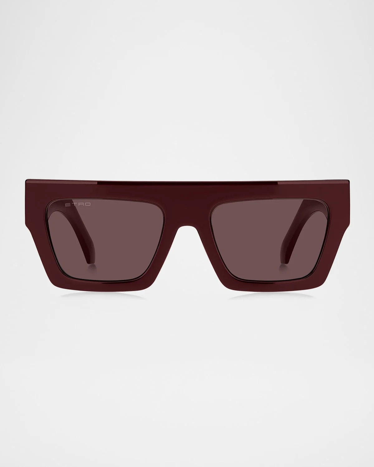 - Etro "Etroscreen" rectangular sunglasses in nylon - Eye/bridge/temple (in mm): 55-20-145 - Gradient lenses with lasered logo in corner - Saddle nose bridge - Pegaso logo on geometric temples - Wide, curved arms - 100% UVA/UVB protection - Made in Italy - Proposition 65 warning for California residents