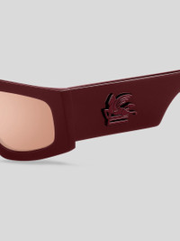 ETRO's "Etroscreen" eyewear styles channels the Maison's impactful elegance through eccentric shapes and heritage details. The bold volumes of these genderless sunglasses are enhanced by a monochrome approach, while the Pegaso logo in matching or gold-tone metal graces the geometric temples. Iconic end tips, designed to recreate the symmetry of the ETRO logo, lend these frames an instantly recognisable touch. The lasered "ETRO" logo on the tinted lens is a signature finishing touch. PRODUCT DETAILS • Frame: 100% polyamide • Lenses with UVA and UVB protection • Fit: International • Lenses: 1.52 inches, bridge: 0.74 inches, temples: 5.51 inches (Lenses: 38,7 mm, bridge: 19 mm, temples: 140 mm) • Made in Italy