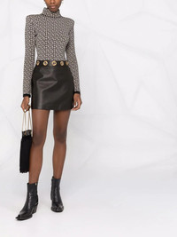 eyelet detail leather mini skirt