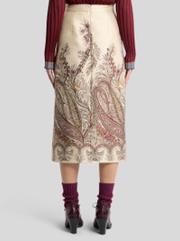 Pencil skirt in glossy fil coupe jacquard fabric with distinctive, refined, placed floral Paisley motif. • Sheath fit • High waist • Rear zip closure • Made in Italy • The model is 5' 9½" (177 cm) tall and wears a size 40 PRODUCT DETAILS • 100% polyester • Lining: 100% viscose