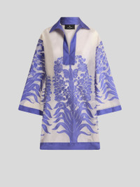 Wrap made from cotton- and silk-blend jacquard fil coupe fabric. This item features a placed floral motif and is complete with contrasting plain-coloured edges. • Regular fit • Pointed collar • Kimono sleeves • Made in Italy • The model is 5' 9½" (177 cm) tall and wears a size S PRODUCT DETAILS • 52% cotton, 30% silk, 18% polyester • Hems: 42% polyester, 30% silk, 28% cotton