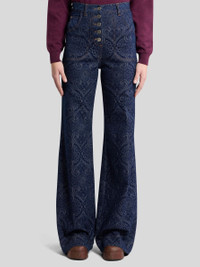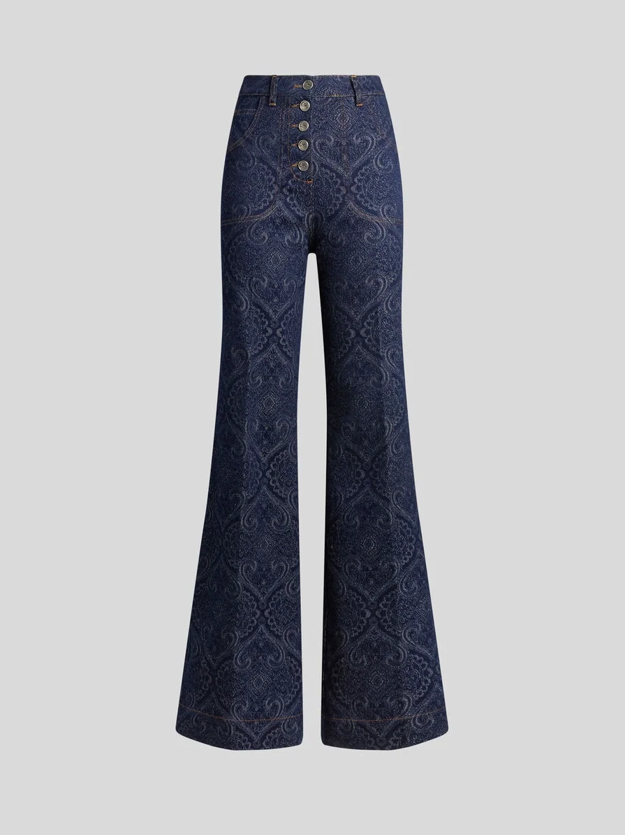 FLARED JACQUARD DENIM JEANS WITH PEGASO BUTTONS
