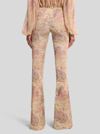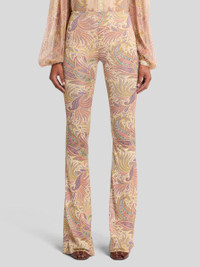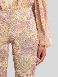 Trousers with high waist, snug fit at the sides and flared hems. This viscose crepe jersey garment is embellished with a printed Paisley foliage motif all over. • Slim fit • High waist • Flared hem detail • Made in Italy • The model is 5' 9½" (177 cm) tall and wears a size 40 PRODUCT DETAILS • 100% viscose