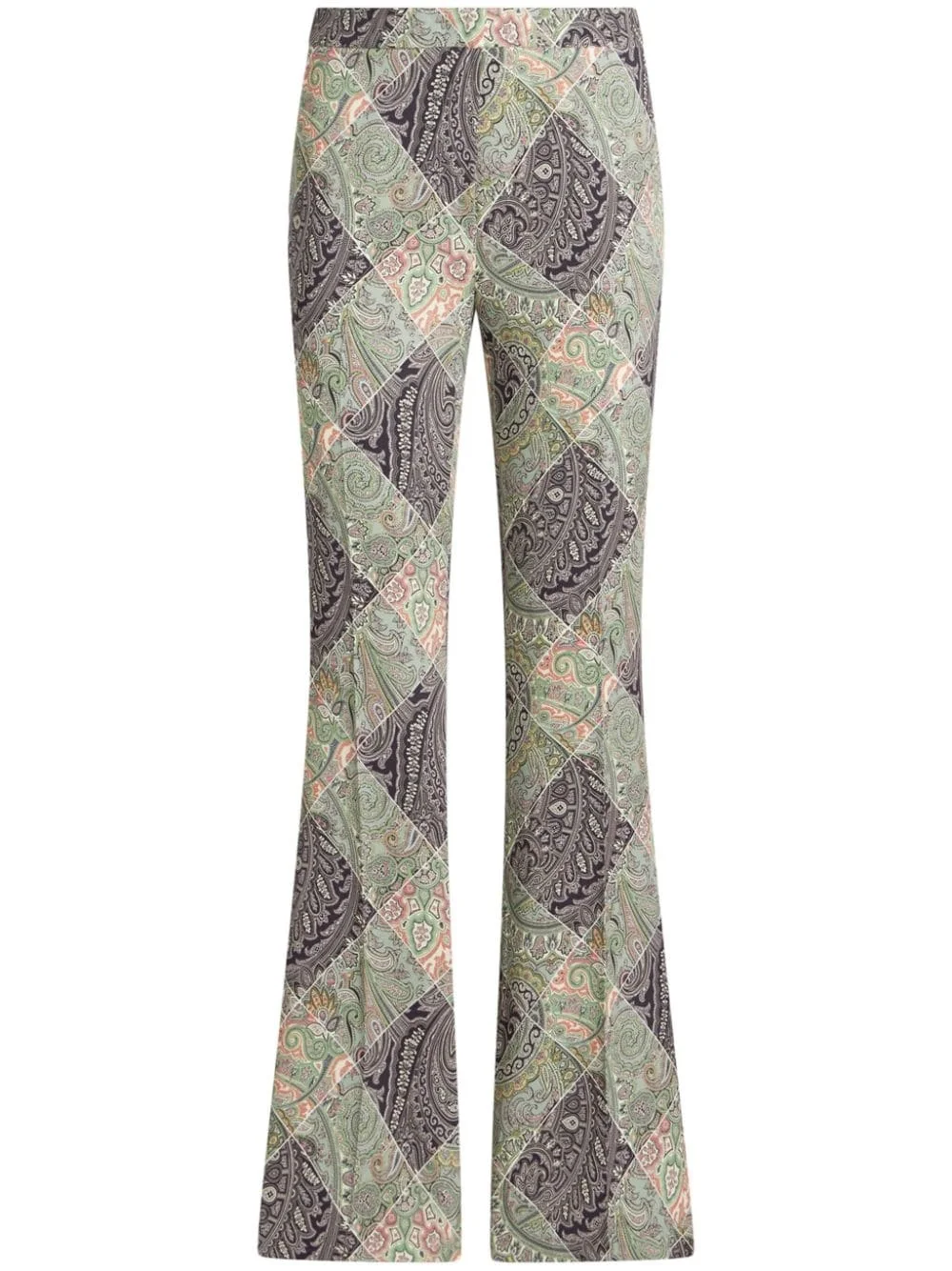 flared printed cady trousers Highlights - Multicolour - Cady texture - Patchwork pattern print - Paisley print - Two side slash pockets - Two rear jetted pockets - Flared Made in Italy Composition Viscose 95%, Elastane 5%