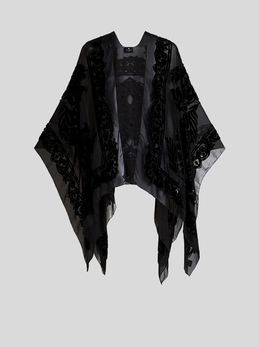 FLORAL BURNOUT VELVET CAPE