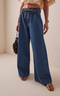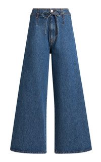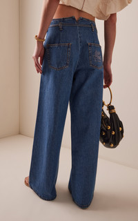 Creative director Marco De Vincenzo continues to redefine house codes by fusing the label's aesthetic (romantic, bohemian) with his own design principles (structured, graphic). Keeping a focus on archival prints, everyday staples get a younger feel while maintaining a certain visual boldness. Cut from pure cotton denim with no stretch, these sleek wide-cut leg jeans are fixed with a high-rise and a tie detail at the waist. PRODUCT DETAILS - Resort '25 - Button and concealed zip fastening - Composition: 100% Cotton - Designer color: Variante Abbinata - Dry clean or machine wash - Made in Italy SIZE & FIT - Designed for a relaxed fit