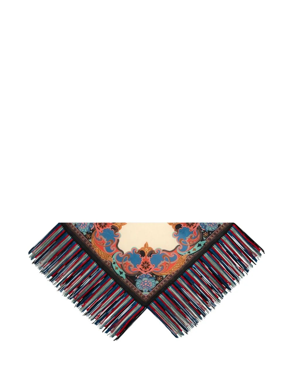 floral fringing silk scarf Highlights - Black - Floral print - Fringing - Bead detail - Square shape - Light-weight Made in Italy Composition Silk 100% SIZE & FIT Measurement WIDTH 27.55 in(70 cm) LENGTH 27.55 in(70 cm)